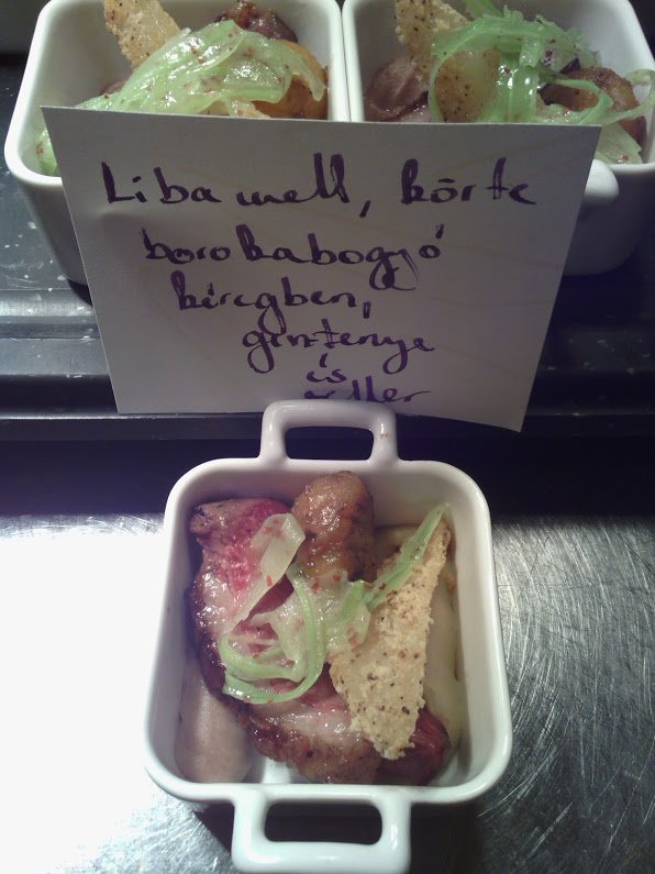 A libamell puha volt és közepesen átsütött. Mellette a “panírozott” körte édeskés íze remekül érvényesült. Járt hozzá még egy teljes sültgesztenye is. Ezen kívül a gesztenye és a zeller krém formájában volt jelen. A gesztenyekrémben jobban átjött a gesztenye íz, mint a zellerkrémben a zeller, de így is jól passzolt a többi hozzávalóhoz.