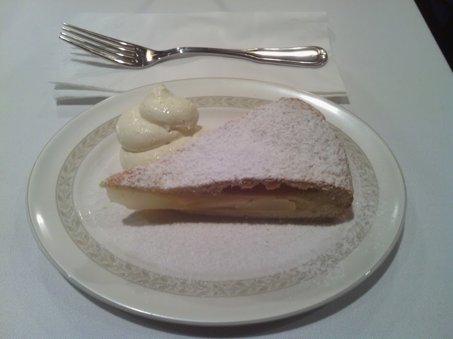 A máktortában kinézetre ugyan elsőre senki nem ismeri fel az ország tortáját, de miután megkóstoltuk, felfedeztünk minden fontos összetevőt: azaz a mákot és az almát. A mák a tésztában volt elsősorban, az alma a tésztára kenve és a tetején lévő hengeres “képződmény” belsejében 🙂 Nagyon finom volt. A mangós krém is jó volt, Alul pisztáciás, tetején mangókrém.