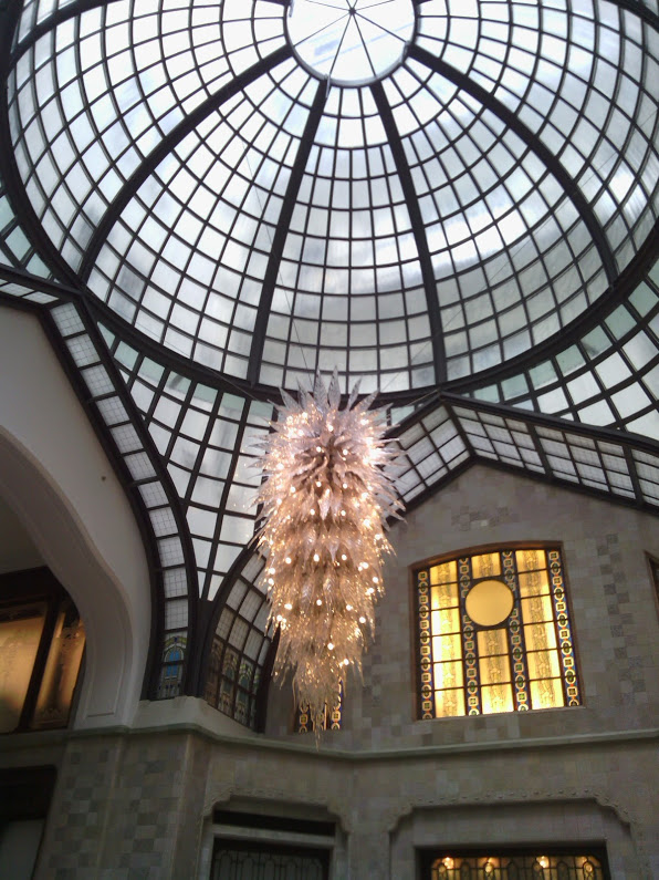 Míg a résztvevők gyülekeztek, megcsodálhattuk a hotel fantasztikus előterét, a hatalmas üvegkupolát, a csillogó üvegcsillárt vagy akár a díszítésként elhelyezett, vázánként több tucat kardvirágot.